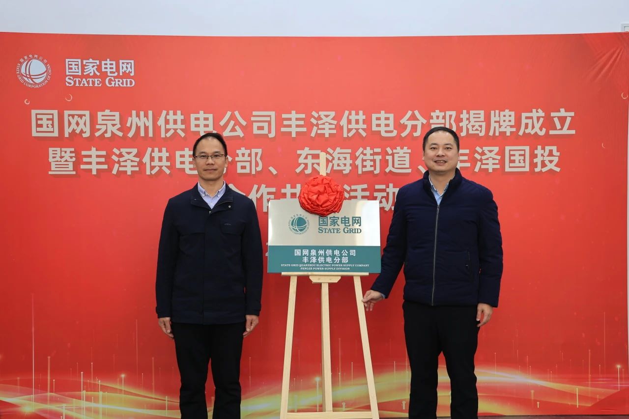 2025年1月10日上午,国网泉州供电公司丰泽供电分部揭牌成立暨丰泽供电分部、东海街道、丰泽国投合作共建活动顺利举行。