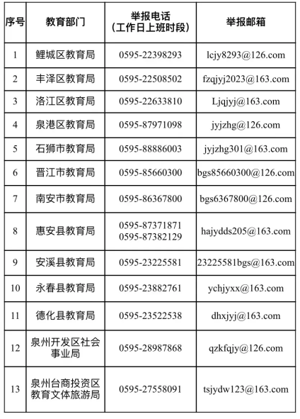 近日,泉州市教育局下发工作方案,开展2024年度“点题整治”项目——“整治社会事务加重中小学师生负担问题,营造良好教育教学环境”,明确整治目标、整治重点、整治措施和进度安排,并公布整治线索征集渠道,进一步营造良好的教书育人环境。具体内容如下↓↓↓