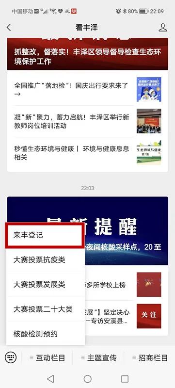 通过“看丰泽”微信公众号进行登记。
