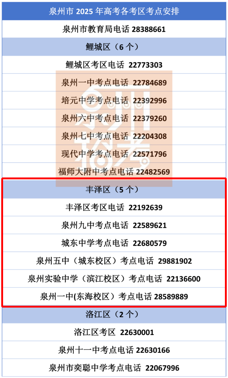 其中,丰泽5个考点
