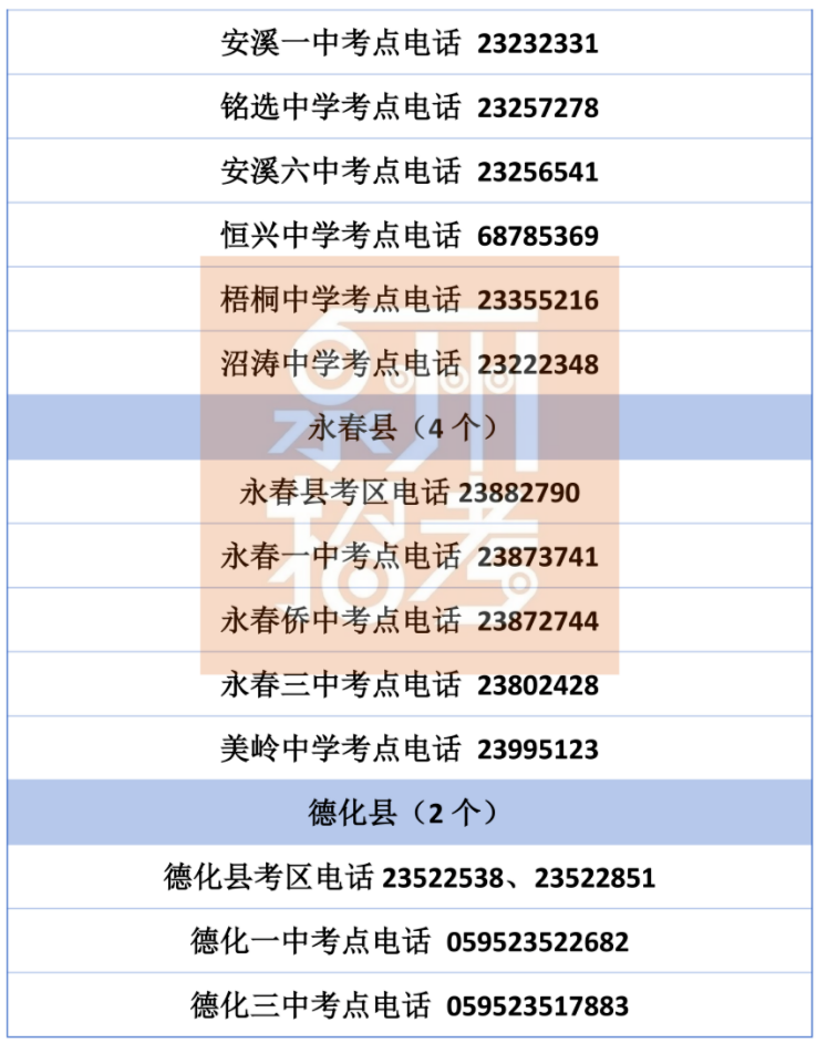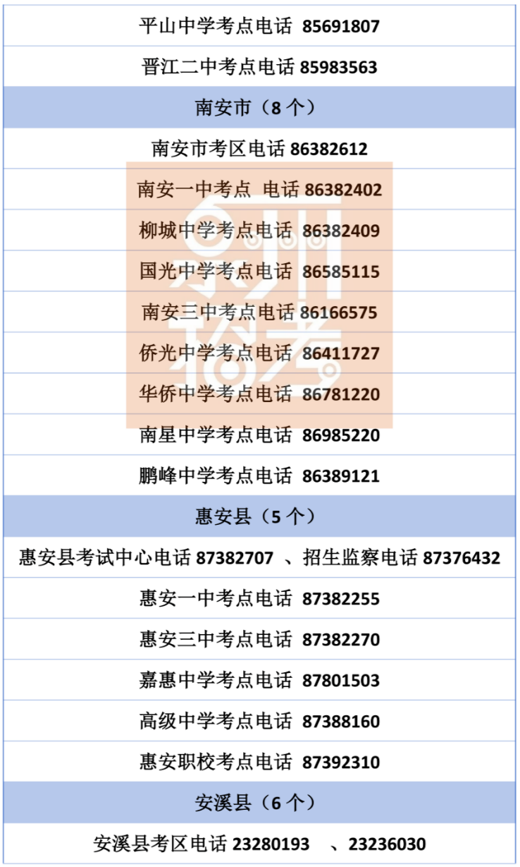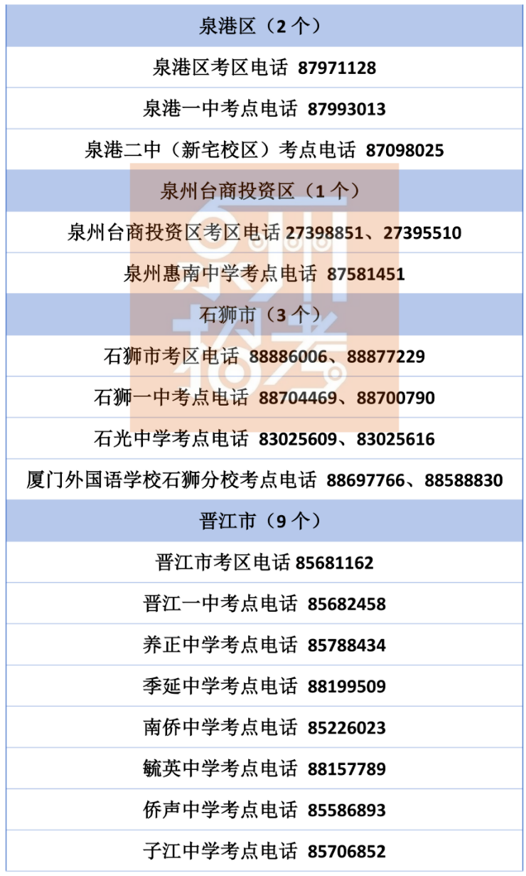 泉州共设有12个考区、53个考点