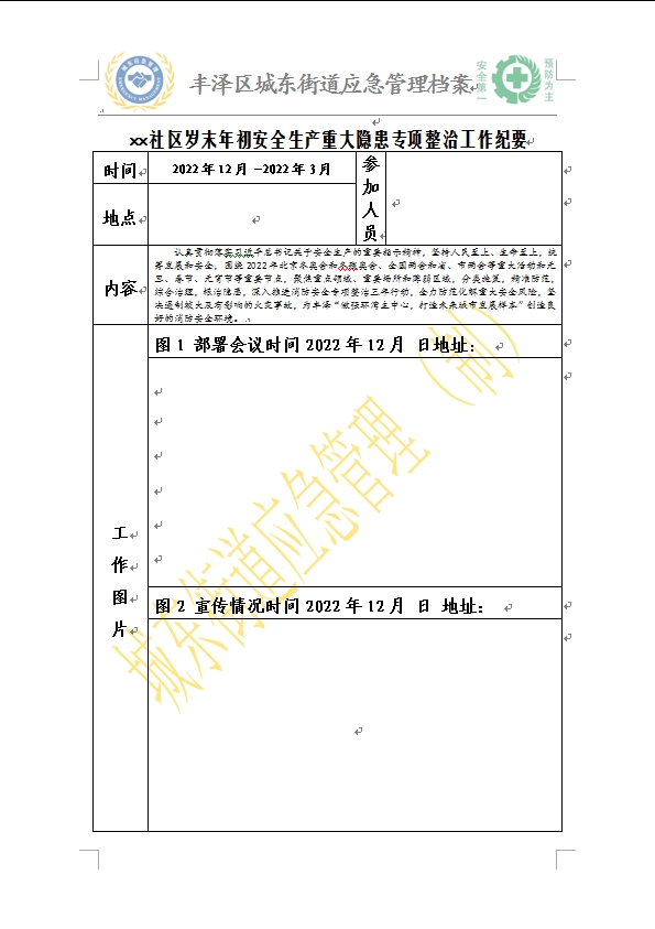 附件:社区岁末年初安全生产重大隐患专项整治工作纪要