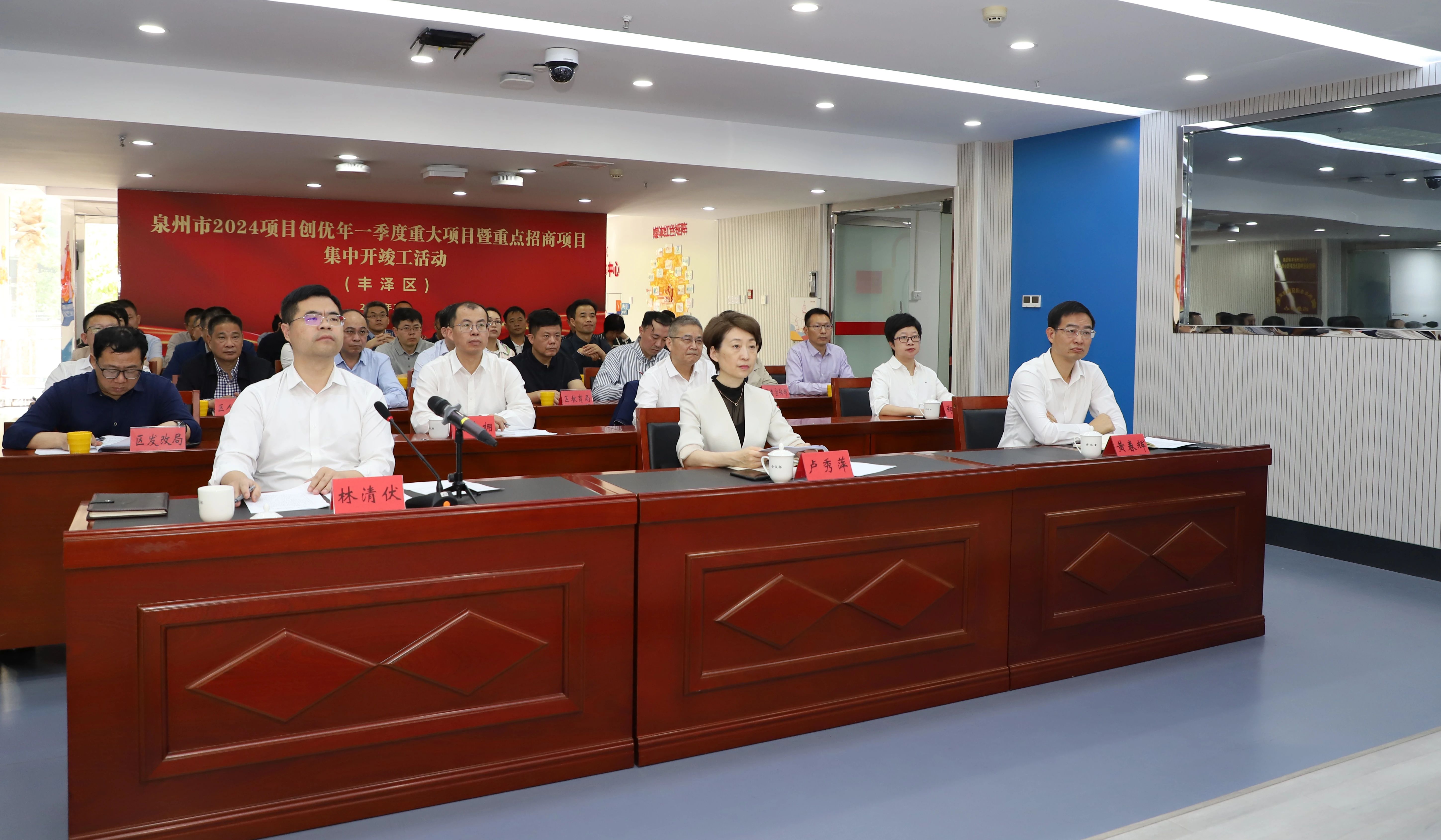 市领导卢秀萍、黄春辉出席,受区委书记高金全委托,区长林清伏汇报我区项目开竣工情况,区领导刘烨明、陈清拥、郑燕然、余嘉容在丰泽分会场或视频连线项目现场参加。